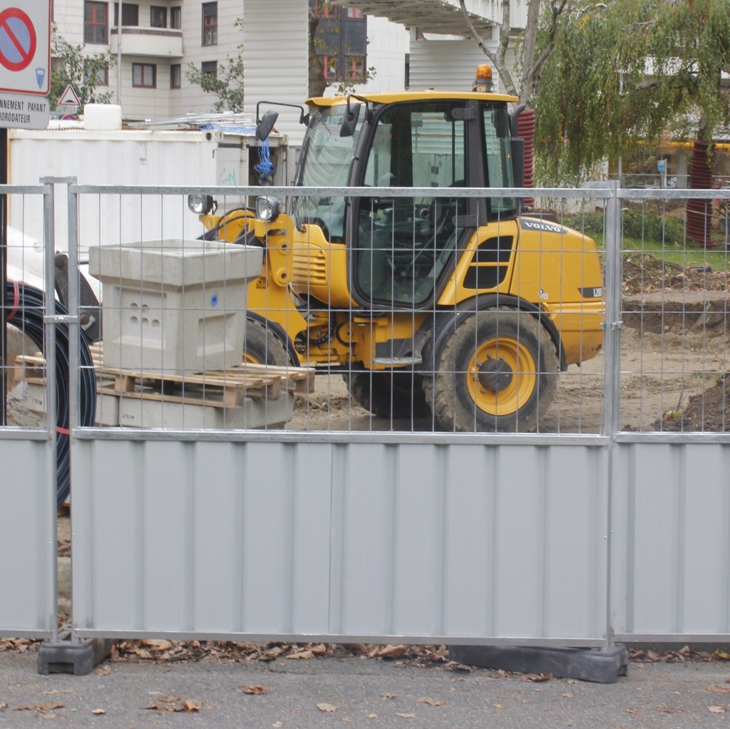 Fabriquée en acier, notre clôture semi-grillagée constitue une barrière de protection efficace, à installer tout autour de votre chantier. Elle vous permet d’isoler la zone de travaux, afin de préserver la sécurité des ouvriers et des riverains.