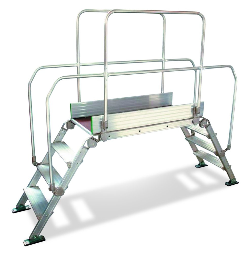 Cette passerelle d'accès, appelée également "saut de loup" en aluminium permet de franchir les obstacles temporaires et d’accéder aux chantiers. Elle est destinée à un usage professionnel intensif.
